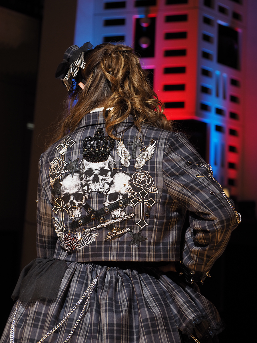 卒業制作で規定のチェック柄を使用してパンクでロリィタなセットアップを制作しました。